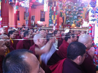 因平常人在家不可隨便修護法,所以邀請諸位喇嘛前來中心與仁波切共同為大家修持40多尊護法,對事業將有很大幫助及加持力量。